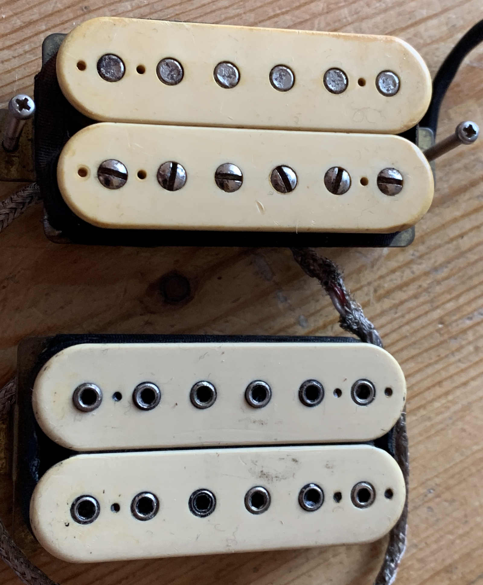 Frühes Set aus den 70’er Jahren bestehend aus einem PAF für die Halsposition und einem Super Distortion für die Stegposition, Chremefarben