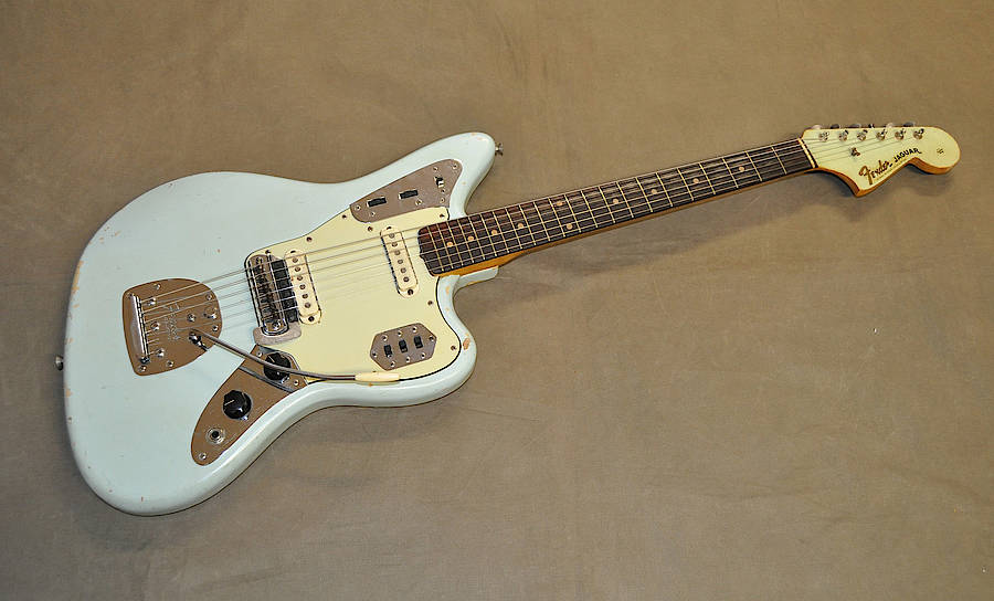 Superschöne und altrarare frühe 62’er Custom Colour Sonic Blue Jaguar mit matching Headstock aus erster Hand. Greenish Guard, erste Roundboardserie m. Clay Dots ( Neckdate Sept. 62) Absoluter Eyecatcher und eine zudem eine tolle Gitarre. 100% original mit Ausnahme des an der Rückseite des Headstocks angebrachten Schildchen des Händlers in Frankfurt der sie damals verkauft hat. Die Bridgeabdeckung ist auch noch vorhanden. Die Gitarre ist ordentlich gespielt worden und hat natürlich etliche Gebrauchspuren hauptsächlich an den Kanten und hinten nach 55 Jahren. Kommt im originalen Browne Tolex Case.- CITES – Bescheinigung vorhanden.
