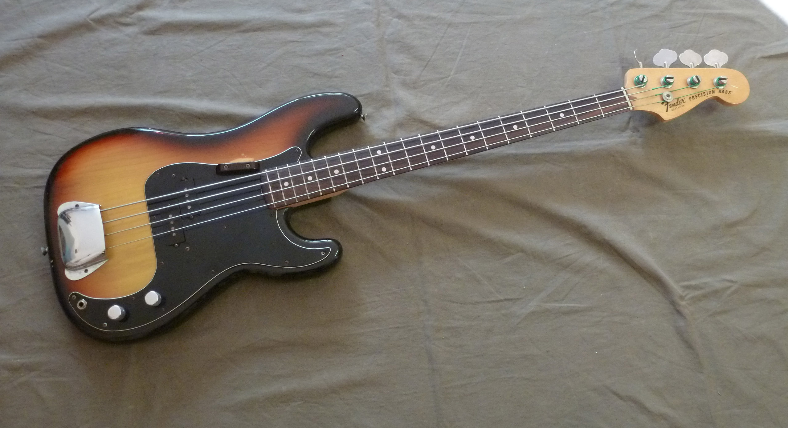 Schöner Sunburst P- Bass aus erster Hand von 1978. Mit 4 kg noch in der angenehmen Gewichtsklasse. Alles Original !Die Bridgeabdeckung ist auch vorhanden. Hat alles was man von einem guten P-Bass erwartet – Spielt gut , klingt gut, mit 4 kg recht leicht, Originalzustand. Case nicht original.