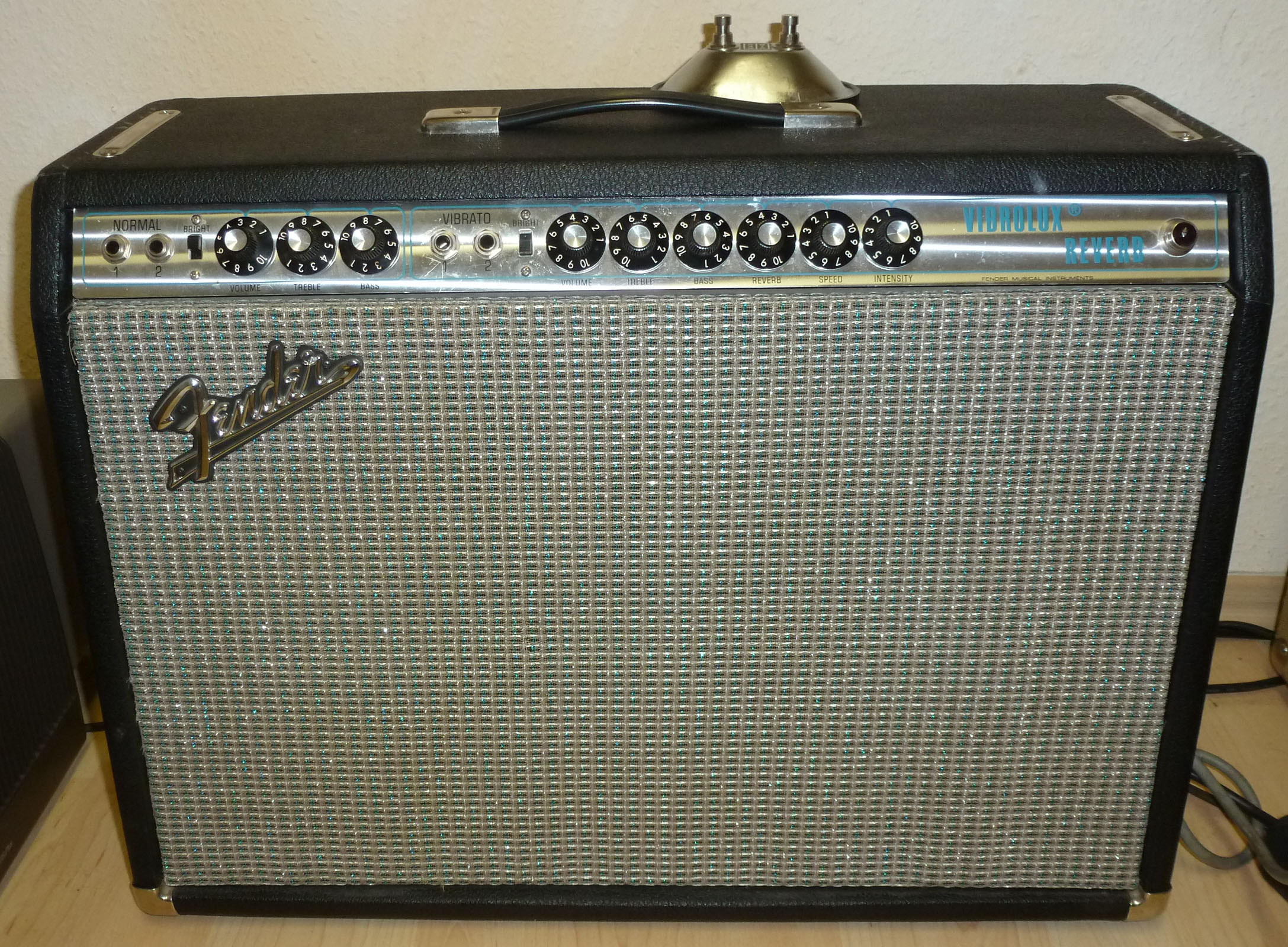 Erstklassiger früher Silver Face Vibrolux Reverb im Superzustand. Komplett original und offenbar über all die Jahre kaum gebraucht. Sogar die original RCA Röhren klingen keineswegs müde nach 43 Jahren. Im Gegenteil: Klingt Klasse das Teil mit seinen 2 x 10″ Oxford Speakern.Vibrolux Reverbs sind nicht allzuviele herstellt worden . Um so mehr ein Grund sich ein so gut erhaltenes Exemplar zu sichern!