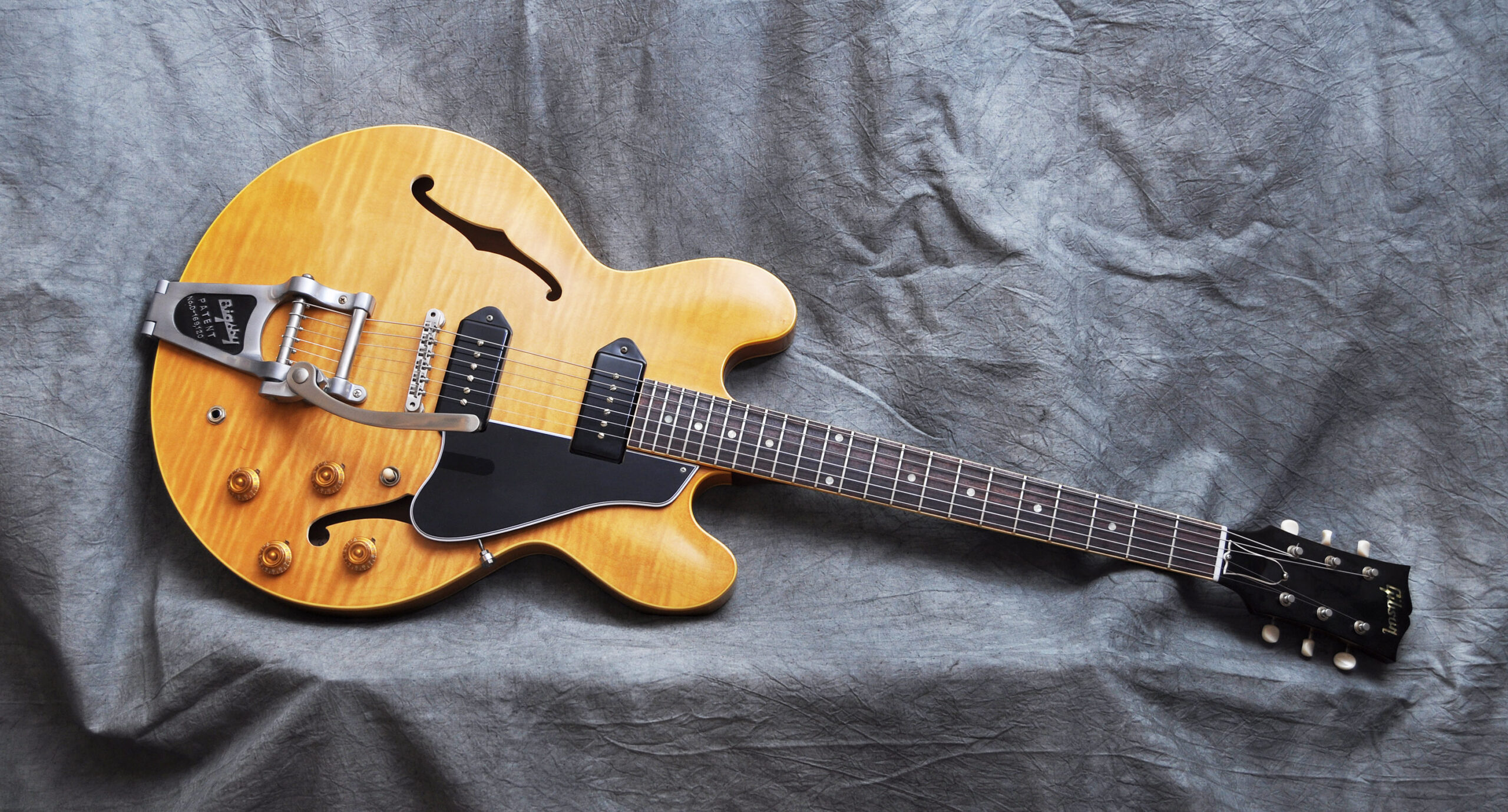 Phantastisch geflammte rare Nature Finish ES 330 aus dem Custom Shop in der Version mit Bigsby Tremolo. Neuwertig aus Sammlerhand. Absoluter Eyecatcher. Wunderschön anzusehen. Und tonal ebenso Klasse . Absolut resonant und schwingend durch den hollow Body ohne Block und ausgestattet mit 2 kräftigen P 90 Pickups. Toll anzusehen, Klasse bespielbar, superleicht und mit Superton . Einfach eine tolle Gitarre die ihresgleichen sucht ! Kommt im Originalcase mit COA.
