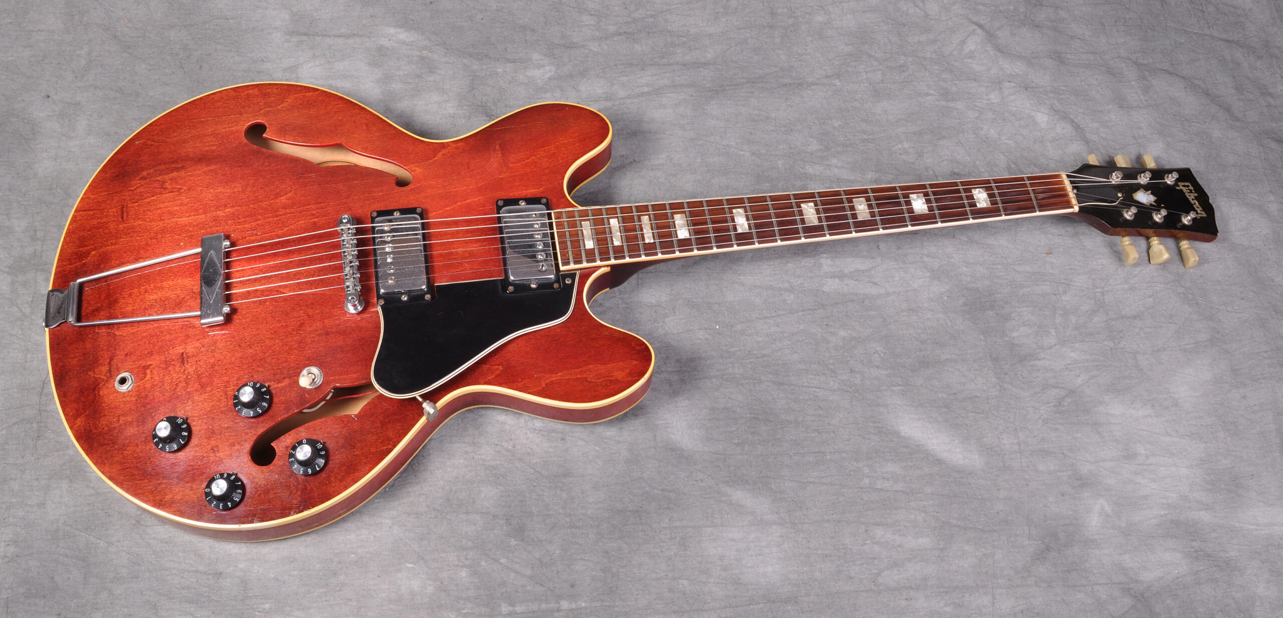 Sehr hübsche Cherry ES 335 von 1970/71. Ausgezeichneter Zustand mit nur moderaten Gebrauchsspuren. Originalzustand bis auf die Bridge und den Toggle. Die originalen Teile liegen bei. Sehr gut klingende Pat.-No. Sticker Pickups und sehr komfortabel bespielbarer Mahogany Neck.