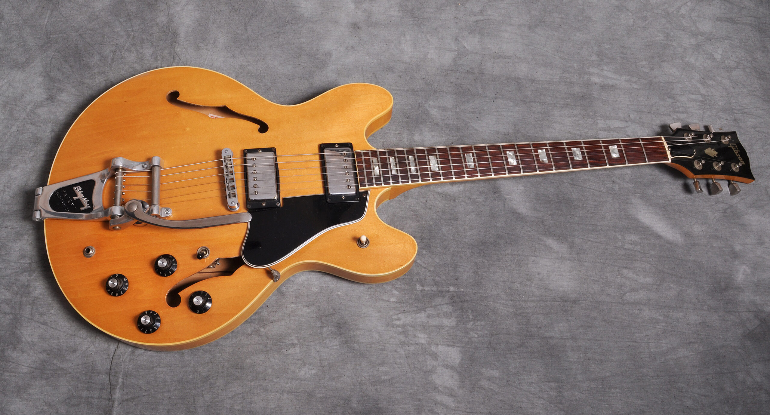 Wunderhübsche Nature ES 335 von 1979 aus 1. Hand. Super resonant und holzig klingende Gitarre mit flachem, breiten C-Neck aus Ahorn. Sehr komfortabel zu bespielen. Der ehemalige owner hat ein Bigsby B 7 Tremolo montiert welches den resonanten und trotzdem kräftigen Tone der Gitarre unterstützt .Das originale Trapeze- Tailpiece wird mitgeliefert falls jemand die Gitarre wieder in den Originalzustand versetzen möchte. Kommt im schwarzen Gibson Case. –