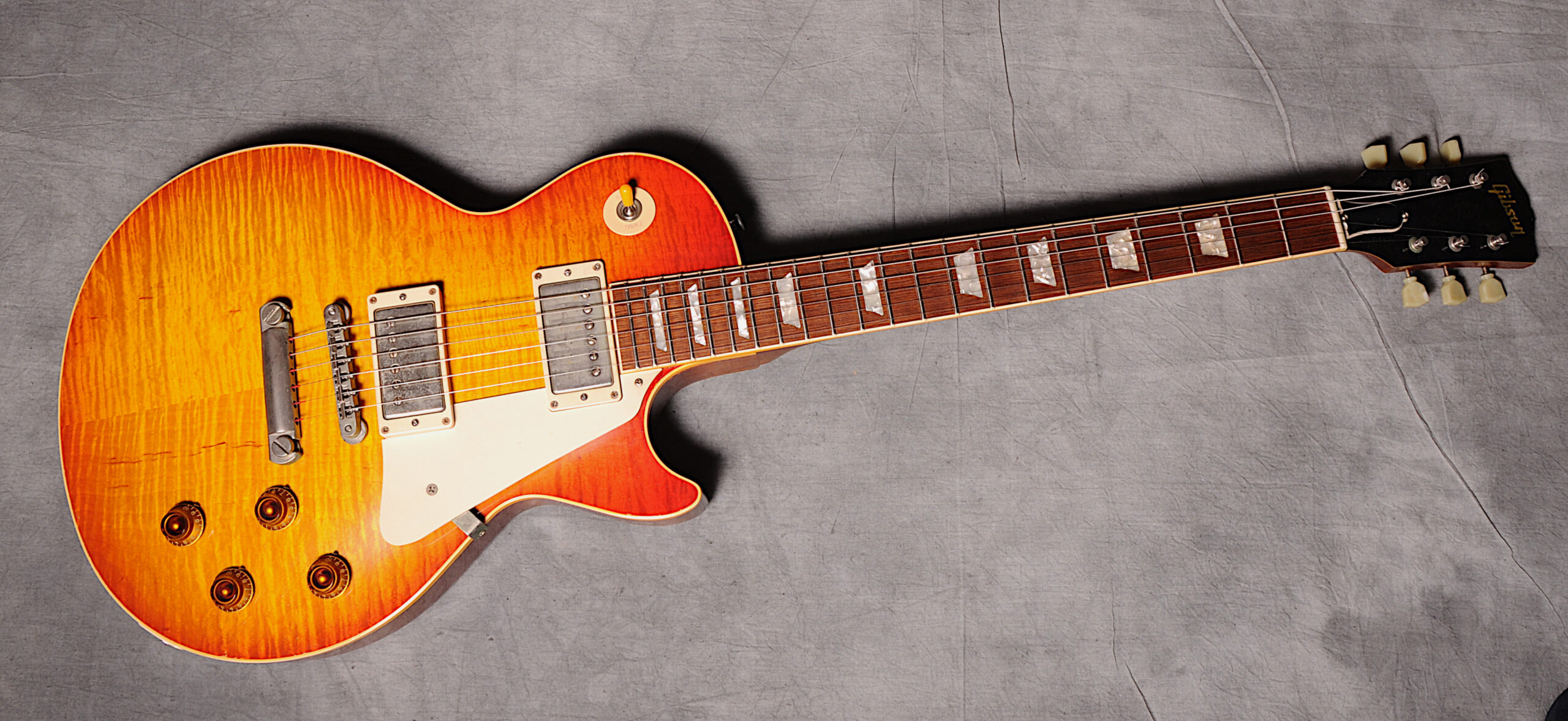 A very nice example of a very early Tom Murphy aged Gibson Historic 1959’ Reissue Les Paul from 2000 .The second year of the Tom Murphy aged series production still without COA. Beautiful bookmatched AAA flamed top. Weight 3,97 kg. Excellent sounding and playable.Comes with original black Custom Art & Historic Case. Great guitar!