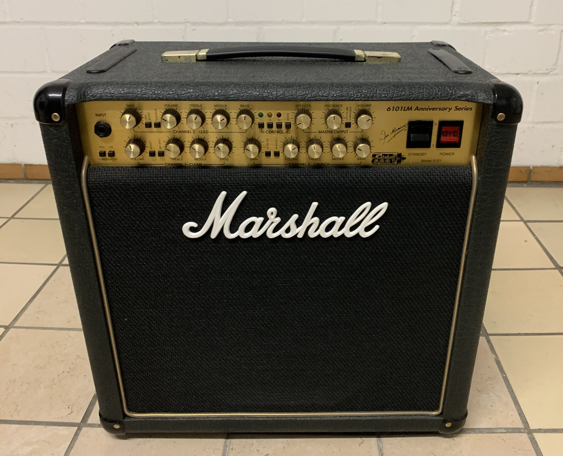 Erstklassig erhaltener, nur sehr selten Wohnzimmer -gebrauchter, 3-kanaliger Marshall 30th Anniversary Röhrenverstärker mit 12 “ Celestion Gold Speaker. Der Amp bietet vielfältigste Einstellmöglichkeiten,Parallel/Seriell FX Weg, 25,50,100 Watt umschaltbar usw..