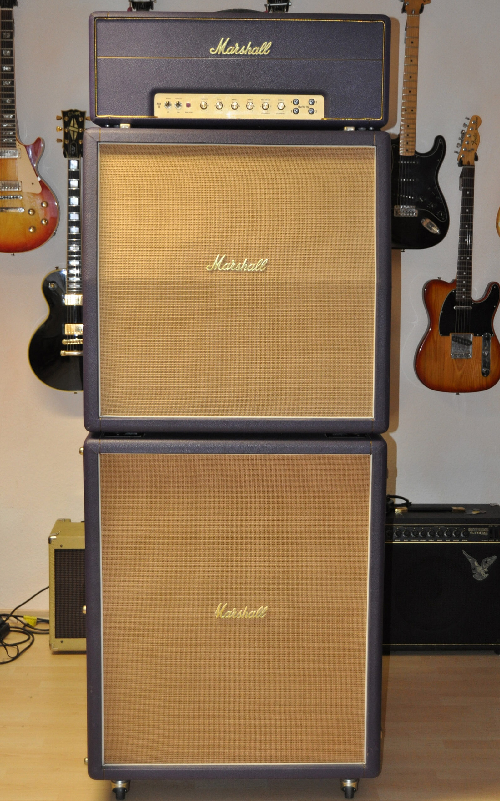 Rares , erstes Limited Edition Jimi Hendrix Fullstack in Purple Tolex aus dem Jahr 1994. Von dieser Sonderedition wurden gerade mal 100 Stück gefertigt!! Absolut selten! 100 Watt Marshall 1959 LTD Top, 1982 A LTD slanted Cabinet und die Rare tall–Box 1982 B LTD. Beide Cabinets sind mit Celestion G12-M 25 Watt Greenback Speakern ausgestattet. Das Stack ist in excellentem optischen und natürlich technischen Zustand mit nur minimalen Gebrauchsspuren aus Sammlerhand. Klingt so wie es aussieht: Großartig!